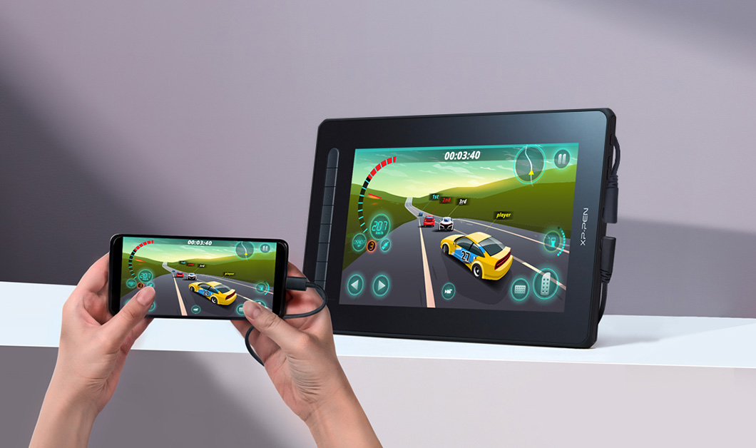 The 3-in-1 cable that supports HDMI signal transmission allows you to connect the drawing display to a PC. The full-featured USB-C port makes connection easier with devices such as PCs, Android phones, and Switch, allowing for a tidy desktop.