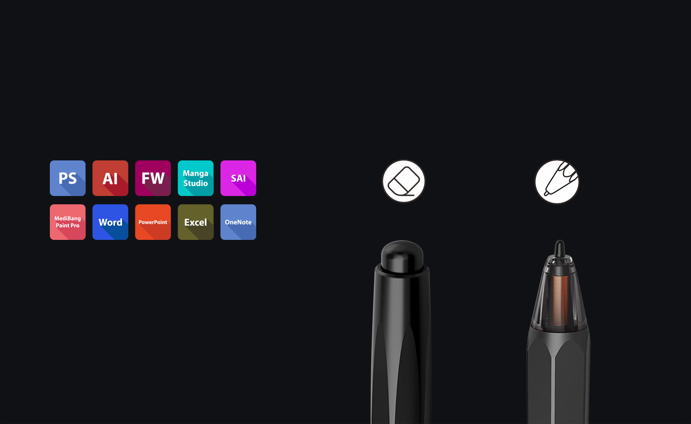 With a partially transparent pen tip on one end and a digital eraser on the other, the P06 is designed exactly like a traditional pencil for intuitive use.