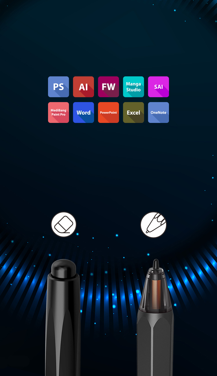 Adobe® Photoshop® CS4/5/6, Adobe® Photoshop® CC 2014/2015/2015.5/2017/2018, Adobe Fireworks® CS4 10.0,Adobe® Illustrator® CC 2018, MediBang® Paint Pro 13.0, Manga Studio® 5.0 (64 Bit) 5.0.3, Word® 2016, Excel® 2016, PowerPoint® 2016, OneNote® 2016, Windows ink®,Windows paint® 3D.